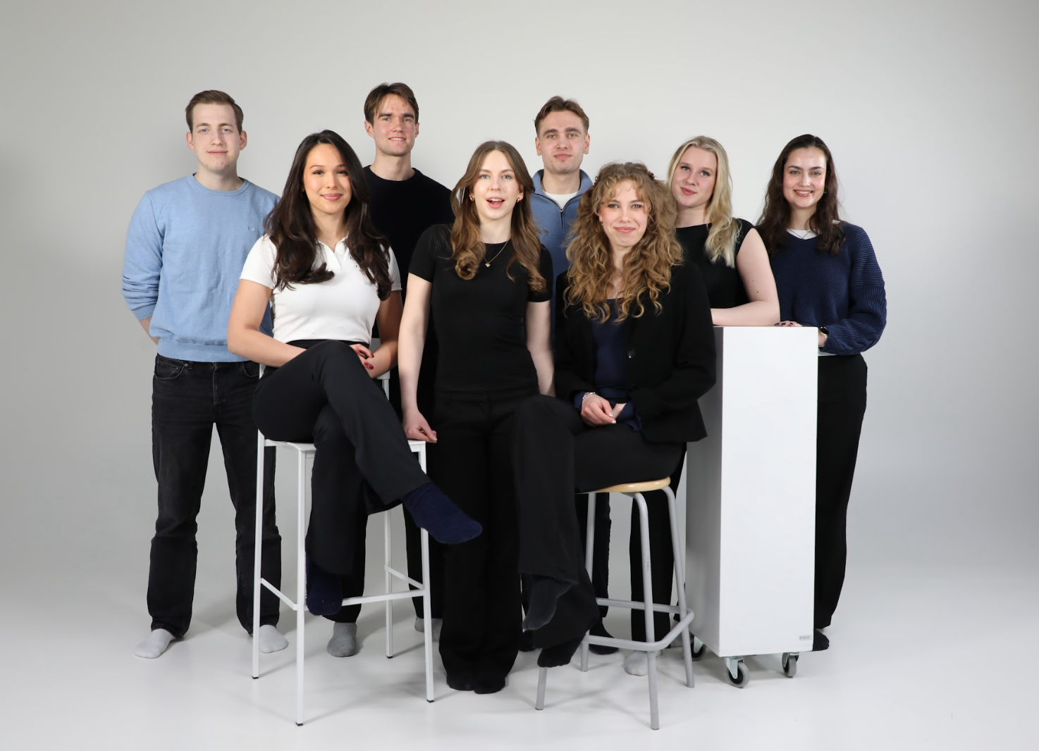 Vasemmalta oikealle: Tuomas Peltola, Cindy Tiussa, Topi Rahikkala, Evelina Myllykoski, Matias Helander, Aava Aula, Nelli Vihola ja Aline Saurama da Silva